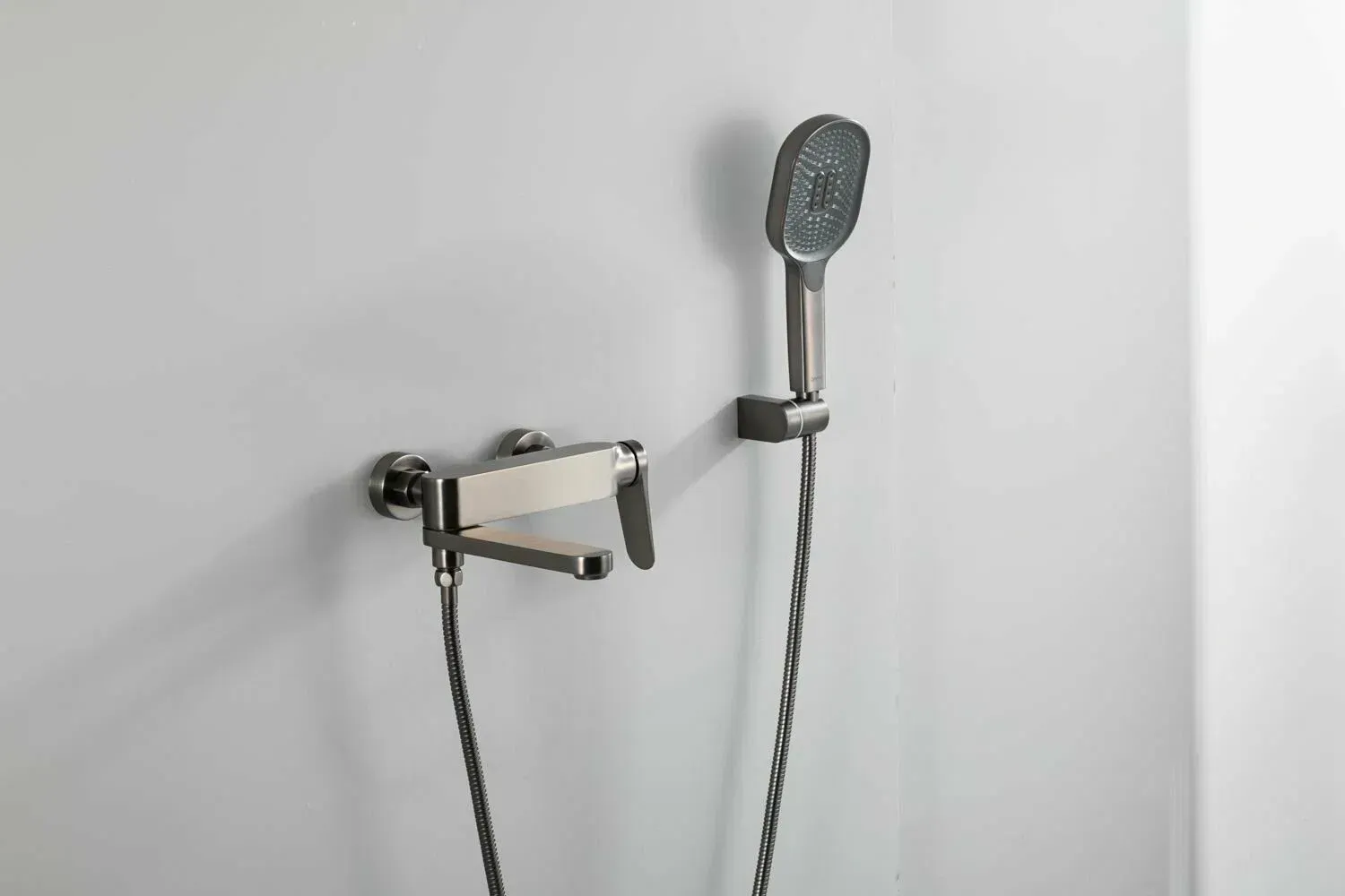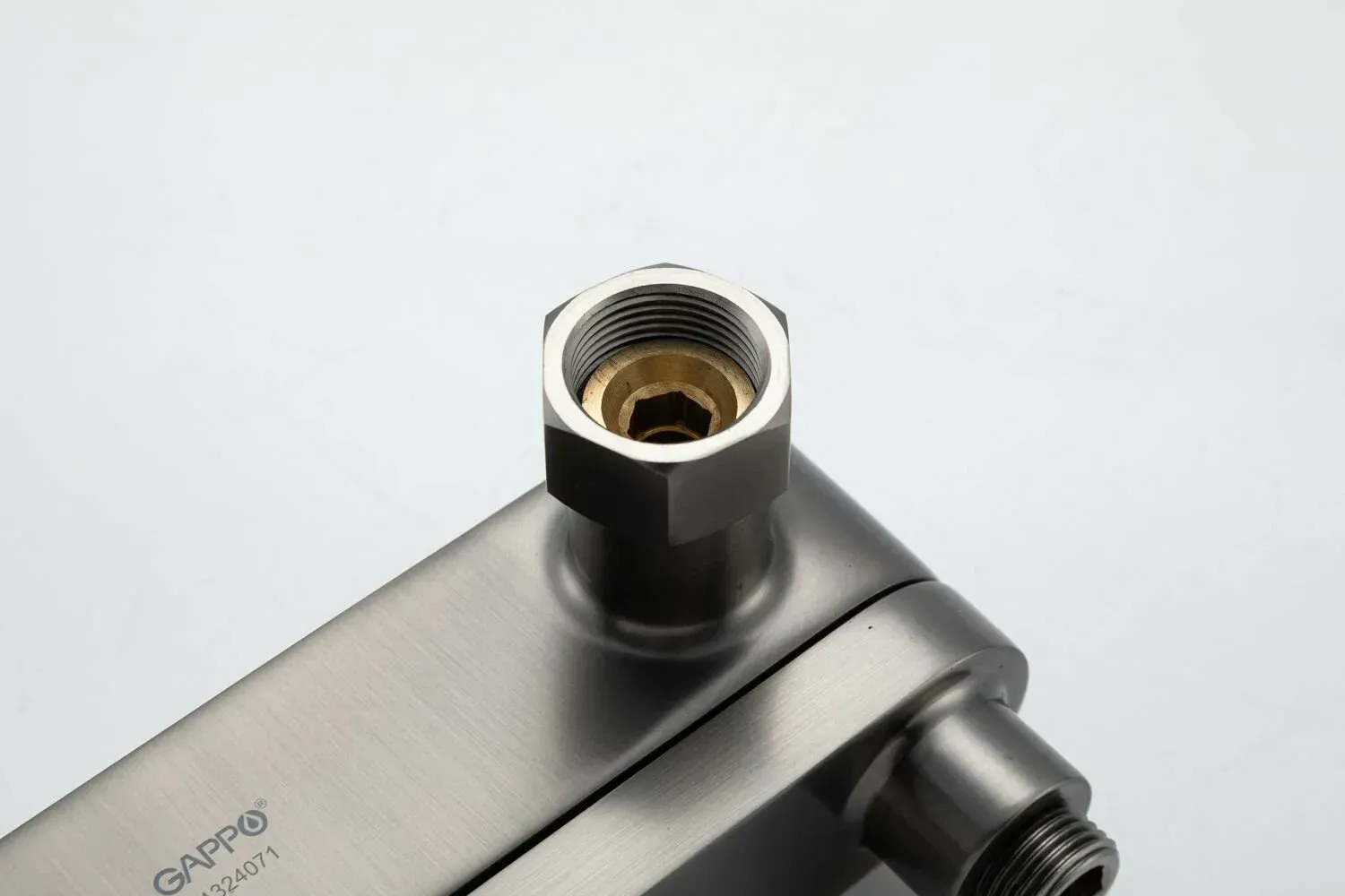 Смеситель Gappo G3210-9 для ванны с душем выполнен в стильном дизайне, в цвете оружейная сталь и латунного корпуса, что гарантирует прочность и долговечность. Поворотный излив позволяет удобно направлять струю воды в нужное место.