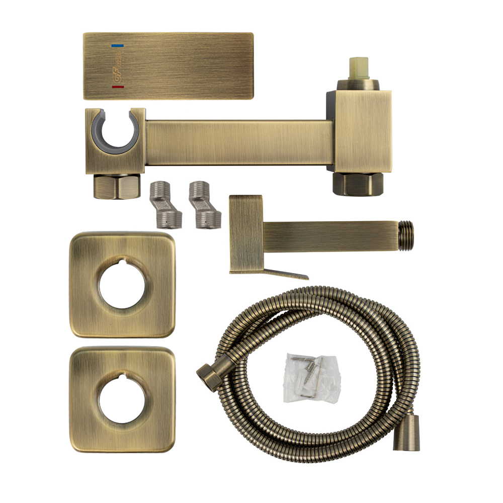 Смеситель с гигиеническим душем, из нержавеющей стали. Создаст комфортные условия для поддержания гигиены. Керамический картридж смешивает воду строго до желаемой температуры и подает ее с регулируемым напором. Управление осуществляется плавным и легким поворотом рычага. Эргономичная лейка включается за счет нажимного механизма. Она изготовлена из экологически безопасного материала, не подверженного коррозии и механическим деформациям. Бронзовое покрытие придает ей эстетичный вид. Габаритные размеры: высота 110 мм, ширина корпуса 150 мм, длина шланга 120 см, чашка 60*60  мм. Вес – 1,54 кг, объём – 0,00414 м3. В комплект входит корпус, лейка, смеситель, душевой шлан, крепёж