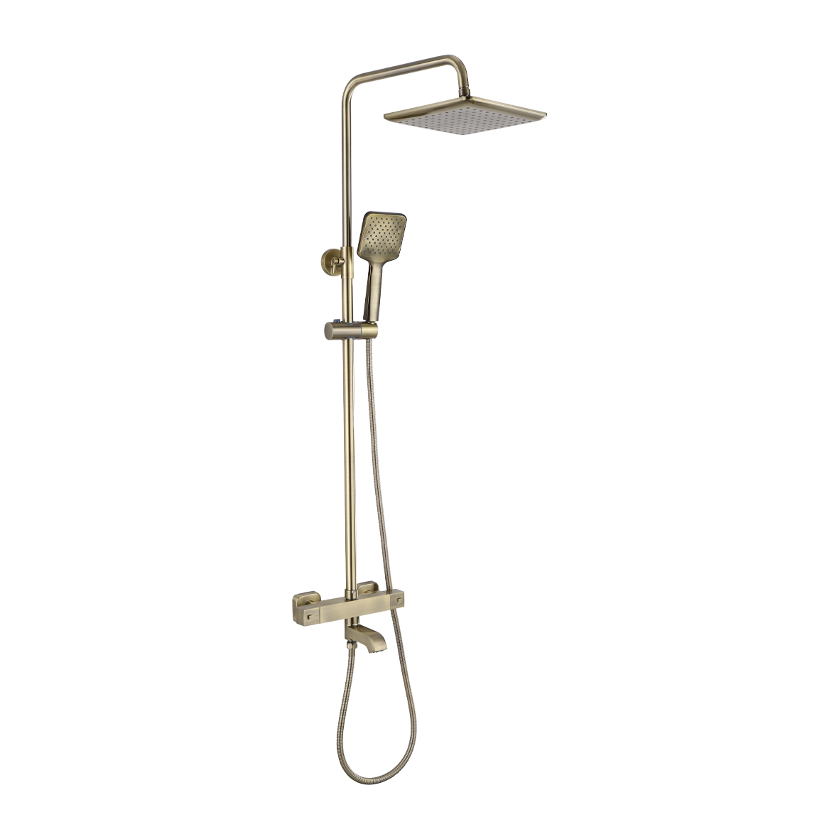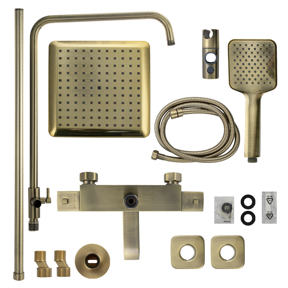 Душевая система с ТЕРМОСТАТОМ бронза BRIMIX 3101 – это одно из важнейших устройств в каждом доме или квартире, которое предназначено для принятия водных процедур, обеспечивая нам чистоту и комфорт. Она состоит из нескольких основных компонентов, таких как смесители для регулирования температуры воды, душевая кабина или ванна, душевая лейка, шланги и различные насадки.