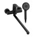 Смеситель чёрного цвета, в ванную/душевую комнату, с длинным, плоским изливом, тяжёлый, массивный корпус, шаровый, с дивертором м/к на корпусе. Материал изготовления — нержавеющая сталь. Картридж d = 40 мм, ручка литая, аэратор для экономии воды, чашки и эксцентрики из нержавеющей стали. Габаритные размеры: ширина 150 мм, высота корпуса 160 мм, длина излива 340 мм, двухрежимная душевая лейка d = 110 мм, шланг 150 см. Вес – 2,000 кг, объём – 0,00800 м3. В комплекте паспорт, корпус с изливом, дивертор, душевая лейка, шланг, кронштейн, комплект крепежа и прокладок.