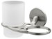 Стакан двойной с держателем. Крепится к стене шурупами или специальным двухкомпонентным клеем для металла и керамики. Произведено из цинкоалюминиевого сплава с покрытием из матового никеля и матового стекла.
