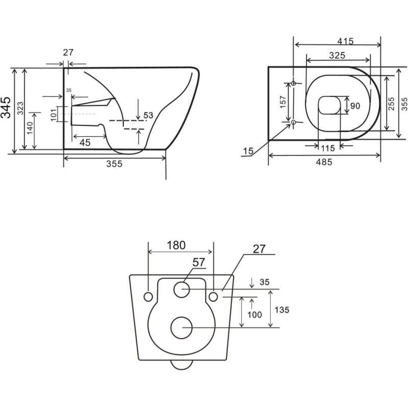 Унитаз подвесной Uptrend Caneo Rimless 35,5×49 с сиденьем микролифт TR2196D