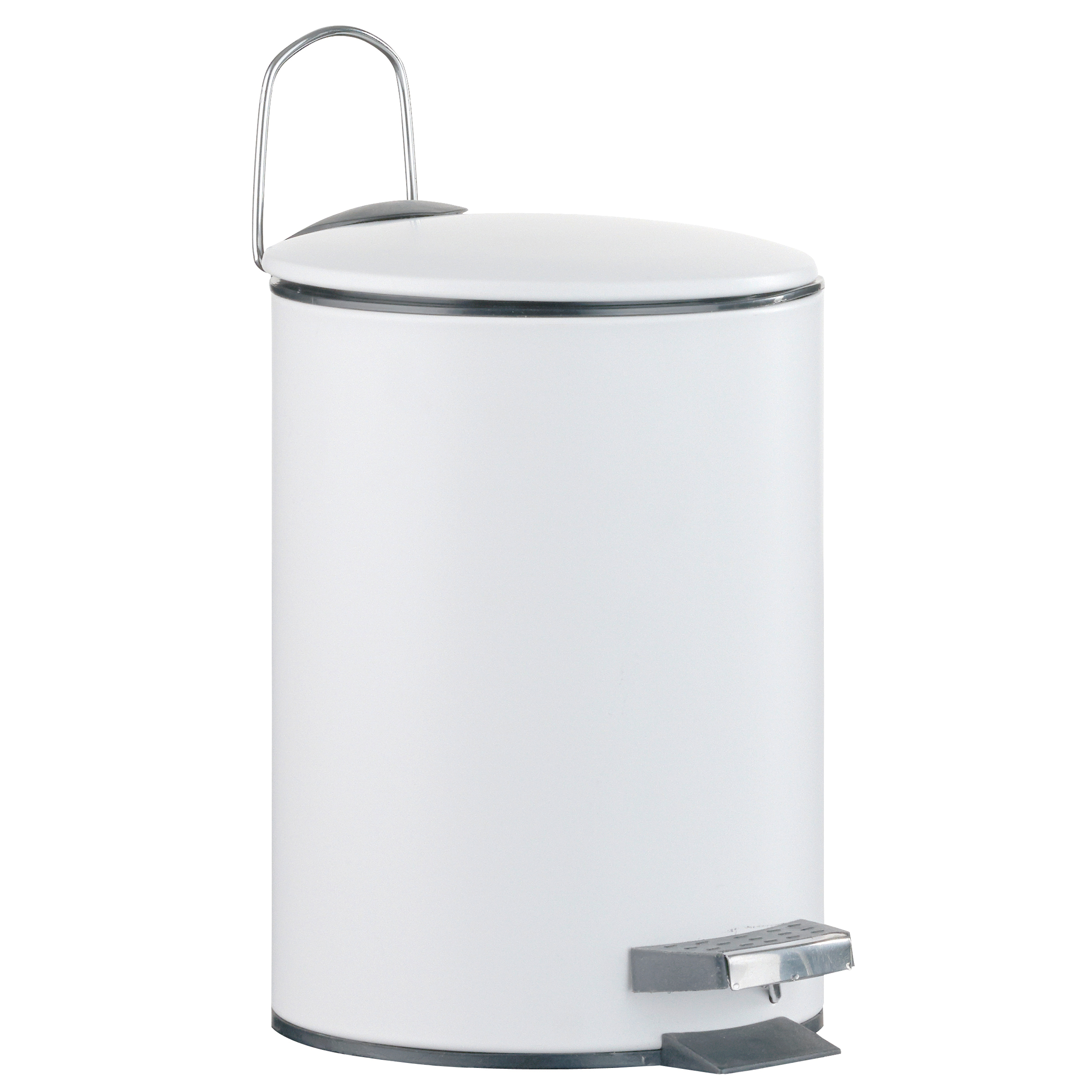 Ведро с педалью. Объем 3 литра. Произведено из хромированной стали. Цвет белый. Съемный пластиковый вкладыш