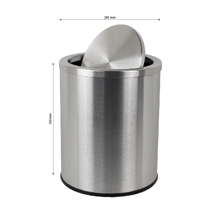 Круглое матовое ведро для хранения мусора, крышка-качели, прекрасно подойдет для ванной комнаты, туалета или кухни и офиса. Объём ведра 12 литров. Отличное решение для утилизации мелкого бытового мусора. Наличие крышки обеспечивает защиту от неприятных запахов и распространения бактерий. Благодаря современному дизайну ведро впишется в интерьер любой кухни и ванной комнаты. Преимущества ведра для мусора: удобно устанавливается и перемещается на любое место; изготовлено из устойчивой к коррозии нержавеющей стали с матовым покрытием; пользоваться изделием удобно и гигиенично благодаря откидной крышке. Нескользящая пластиковая основа ведра предотвращает повреждение пола. Габаритные размеры: высота 310 мм, диаметр 255 мм.