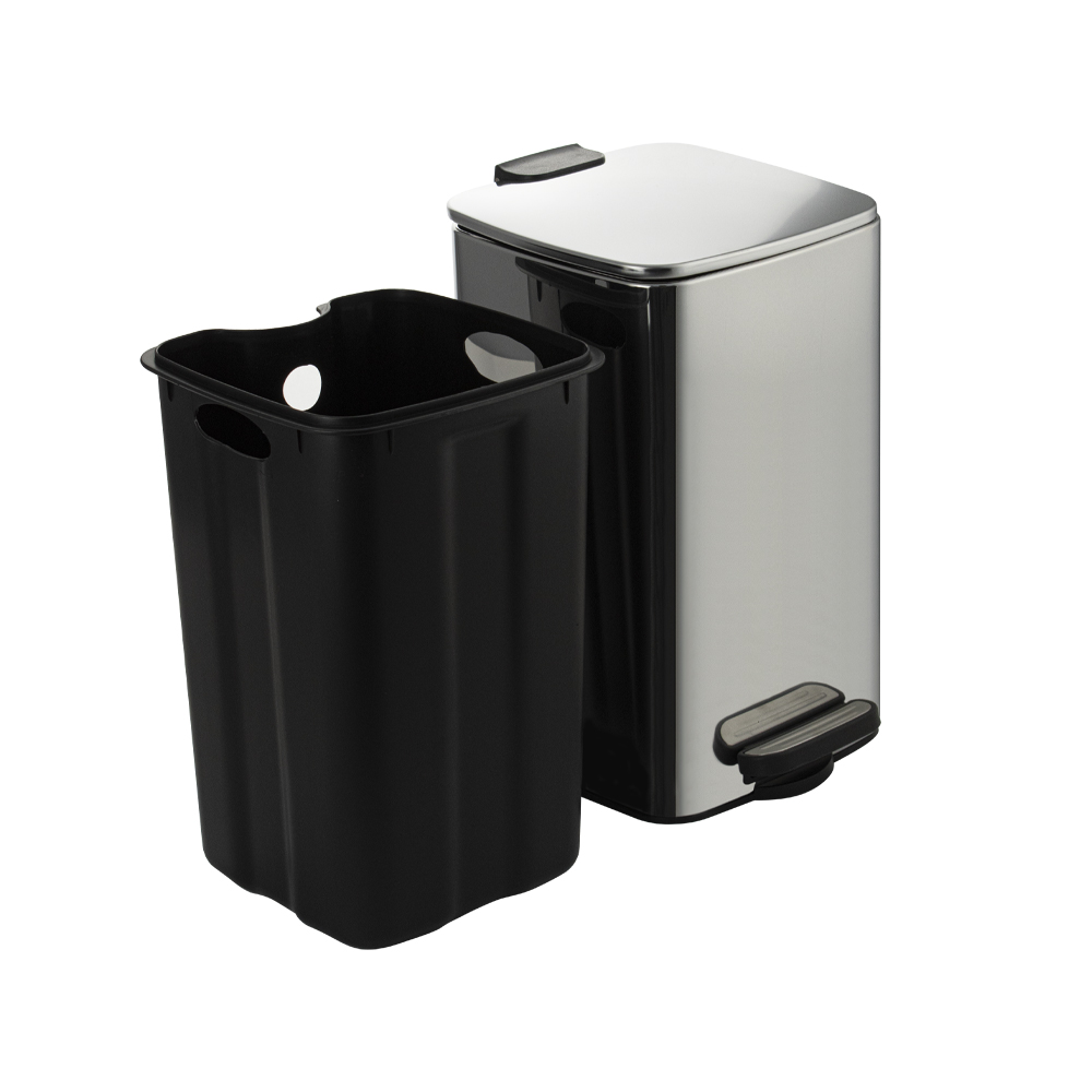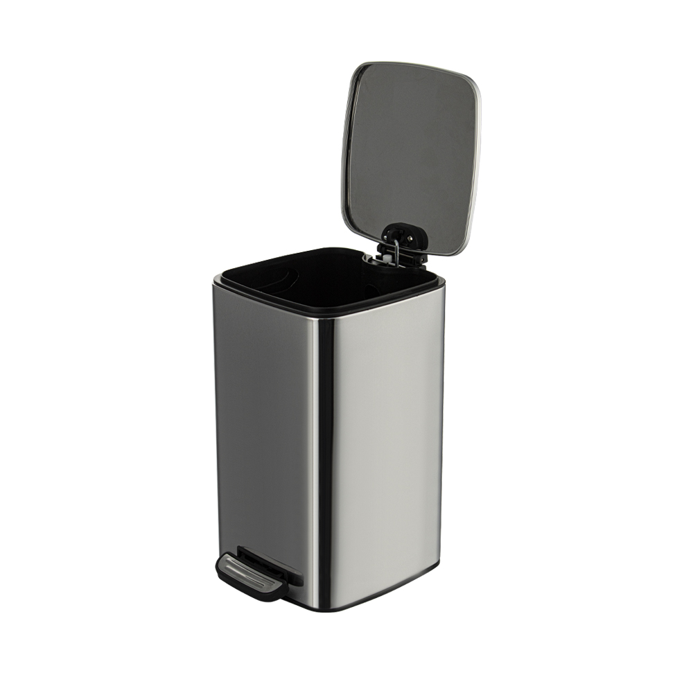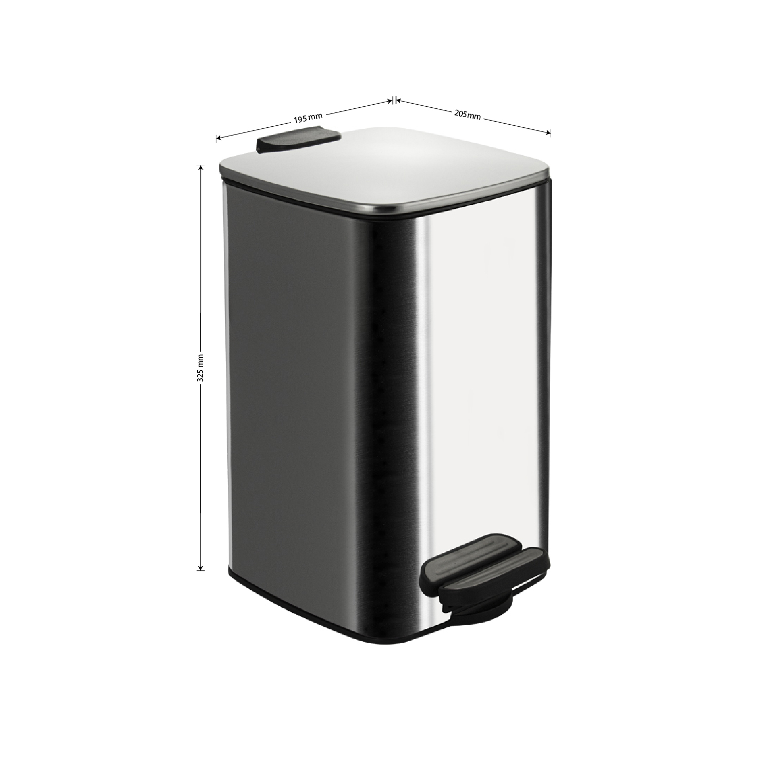 Ведро для мусора с педалью и откидной крышкой с функцией микролифт, прекрасно подойдет для ванной комнаты, туалета или кухни и офиса. Нержавеющая сталь SUS 410. Ведро оснащено пластиковым гигиеническим контейнером с металлической ручкой для переноса и механизмом поднятия крышки, при помощи нажатия на педаль. Объём ведра 8 литров. Отличное решение для утилизации мелкого бытового мусора. Наличие крышки обеспечивает защиту от неприятных запахов и распространения бактерий, а педальная система открывания позволяет не прикасаться к баку руками. Благодаря современному дизайну ведро впишется в интерьер любой кухни и ванной комнаты. Преимущества ведра для мусора с педалью: удобно устанавливается и перемещается на любое место; изготовлено из устойчивой к коррозии нержавеющей стали хромированного цвета; пользоваться изделием удобно и гигиенично благодаря педали в нижней части корпуса. Нескользящая пластиковая основа ведра предотвращает повреждение пола. Габаритные размеры: высота 325 мм, ширина 195 мм, длина 205 мм. Вес – 1,36 кг, объём – 0,01842 м3.
