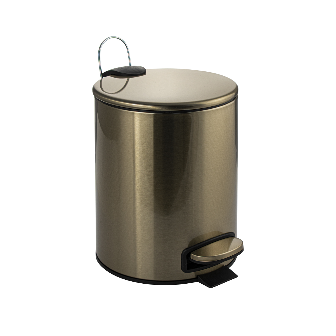 Круглое бронзовое ведро с микролифтом для хранения мусора, с педалью и откидной крышкой, прекрасно подойдет для ванной комнаты, туалета или кухни и офиса. Ведро оснащено пластиковым гигиеническим контейнером и плавным механизмом поднятия – опускание крышки, при помощи нажатия на педаль. Объём ведра 5 литров. Отличное решение для утилизации мелкого бытового мусора. Наличие крышки обеспечивает защиту от неприятных запахов и распространения бактерий, а педальная система открывания позволяет не прикасаться к баку руками. Благодаря современному дизайну ведро впишется в интерьер любой кухни и ванной комнаты. Преимущества ведра для мусора с педалью: удобно устанавливается и перемещается на любое место; изготовлено из устойчивой к коррозии нержавеющей стали с хромированным покрытием; пользоваться изделием удобно и гигиенично благодаря педали в нижней части корпуса. Нескользящая пластиковая основа ведра предотвращает повреждение пола