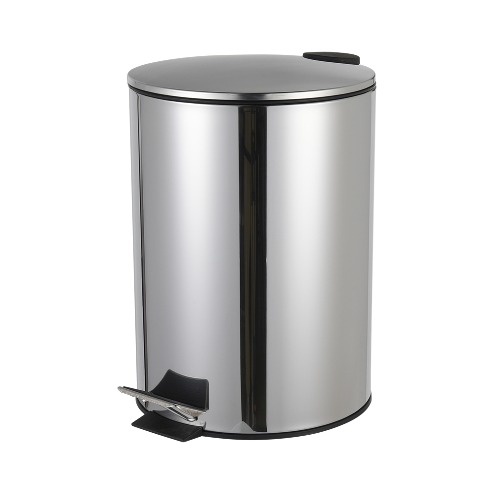 Ведро с педалью. Объем 12 литров. Произведено из нержавеющей стали. Поверхность глянцевая. Съемный пластиковый вкладыш с ручкой.