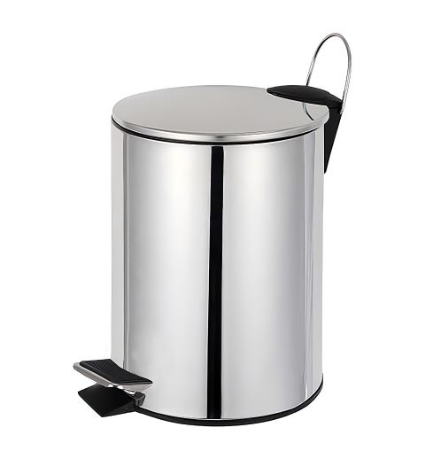 Ведро с педалью. Объем 5 литров. Произведено из нержавеющей стали. Поверхность глянцевая. Съемный пластиковый вкладыш с ручкой.