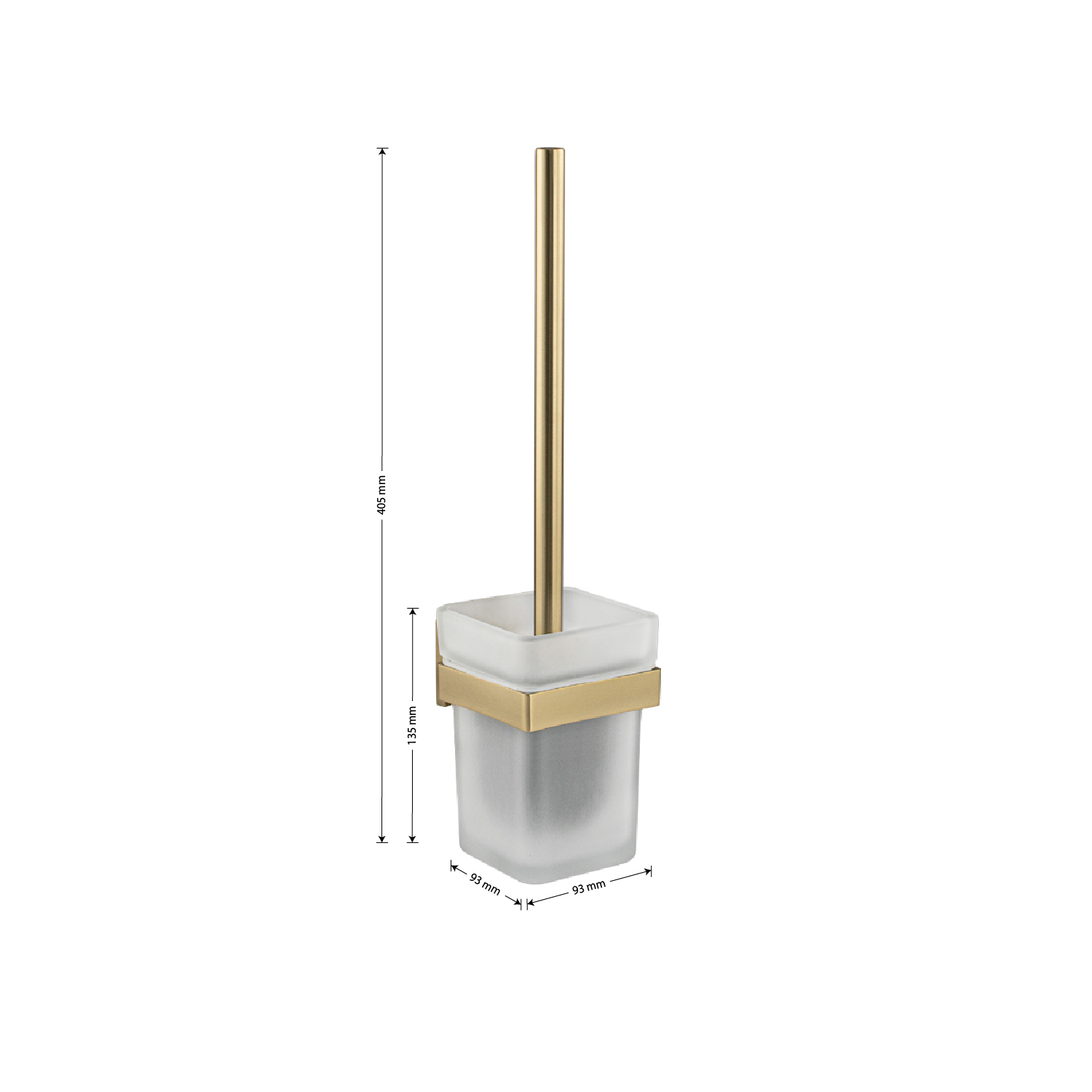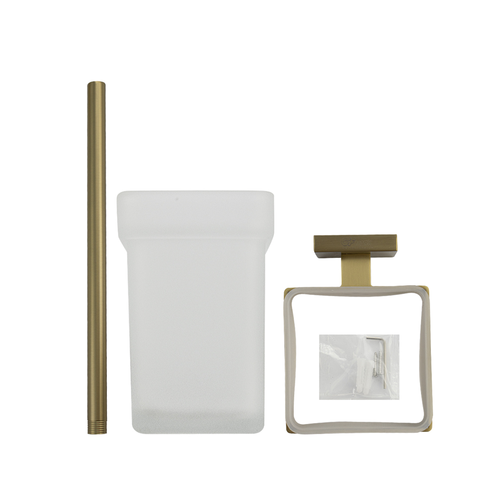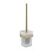 Ёршик со стеклянной матовой колбой, настенный — необходимый аксессуар любой туалетной комнаты. Приспособление обеспечит порядок и правильное хранение гигиенических принадлежностей. Изделие выполнено из стекла и металла с матовым покрытием. Жесткая щетина ерша гарантирует отличный результат очистки санузлов. Такое сочетание материалов делает конструкцию прочной и долговечной. Держатель колбы легко и удобно крепится к стене при помощи фурнитуры входящей в комплект поставки. Изготовлен из прочной нержавеющей стали марки SUS 304 с матовым золотым покрытием, которое придает безупречный стильный вид и долговечность. Габаритные размеры: высота 405 мм, высота колбы 135 мм, ширина колбы 93 мм, основание 50*50 мм.